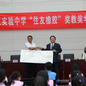 為了更好地履行企業(yè)社會(huì)責(zé)任、推動(dòng)當(dāng)?shù)亟逃聵I(yè)發(fā)展,9月20日,住友橡膠(中國)有限公司繼2016年設(shè)立“住友橡膠獎(jiǎng)教獎(jiǎng)學(xué)”基金后,再一次向常熟市濱江實(shí)驗(yàn)中學(xué)捐贈(zèng)5萬元住友橡膠獎(jiǎng)教獎(jiǎng)學(xué)基金,用于獎(jiǎng)勵(lì)認(rèn)真投入到教學(xué)這一神圣職務(wù)中的教師、以及為不辜負(fù)老師期待,每天勤奮讀書的同學(xué)們。